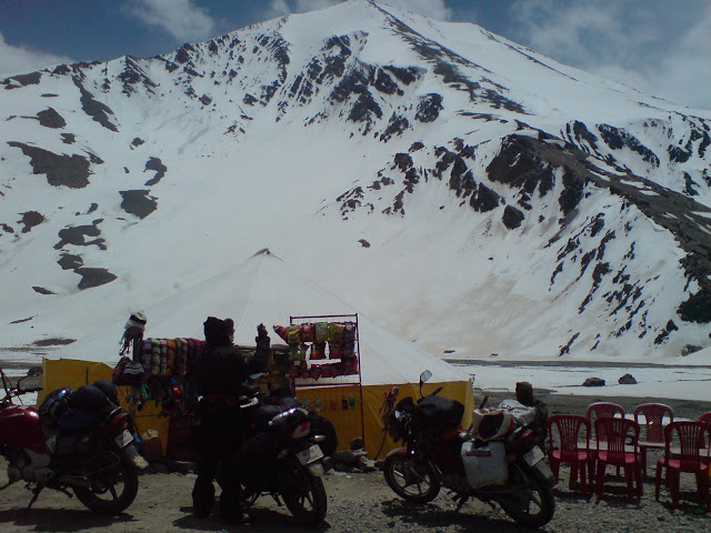 Here at this stall, some officials had come. They where some CID from Delhi, if you see here up, their vehicle with red-light. Spoke to us for a while, appreciated with the task & journey we have been doing. They told us about the heavy snow at the next point "Baralacha La". We where little nervous after facing the temerature & weather so far & hearing the amount of snow & kind of climate awaiting us further. We had to do anyhow, no turning back.